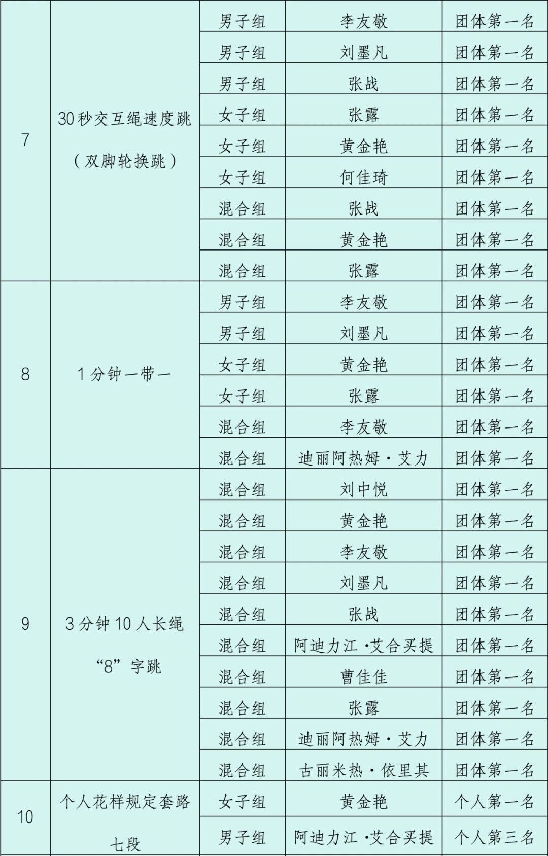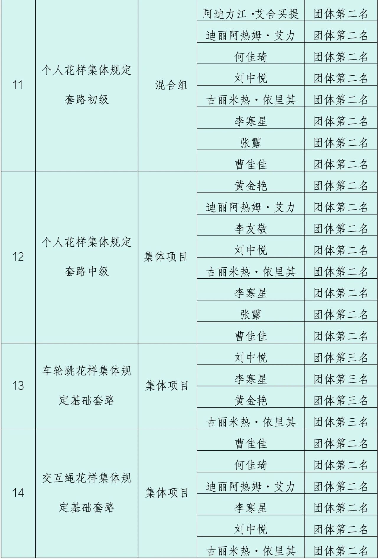 参加自治区第三届校园跳绳联赛获奖名单