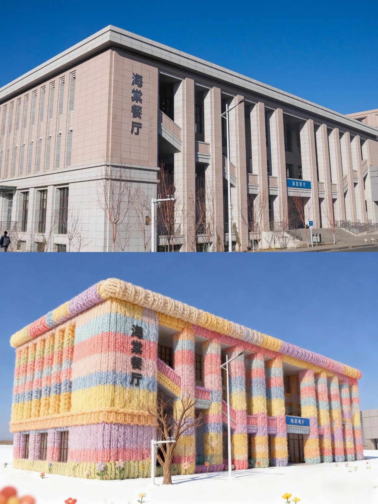 校园的建筑都已“穿好毛衣”