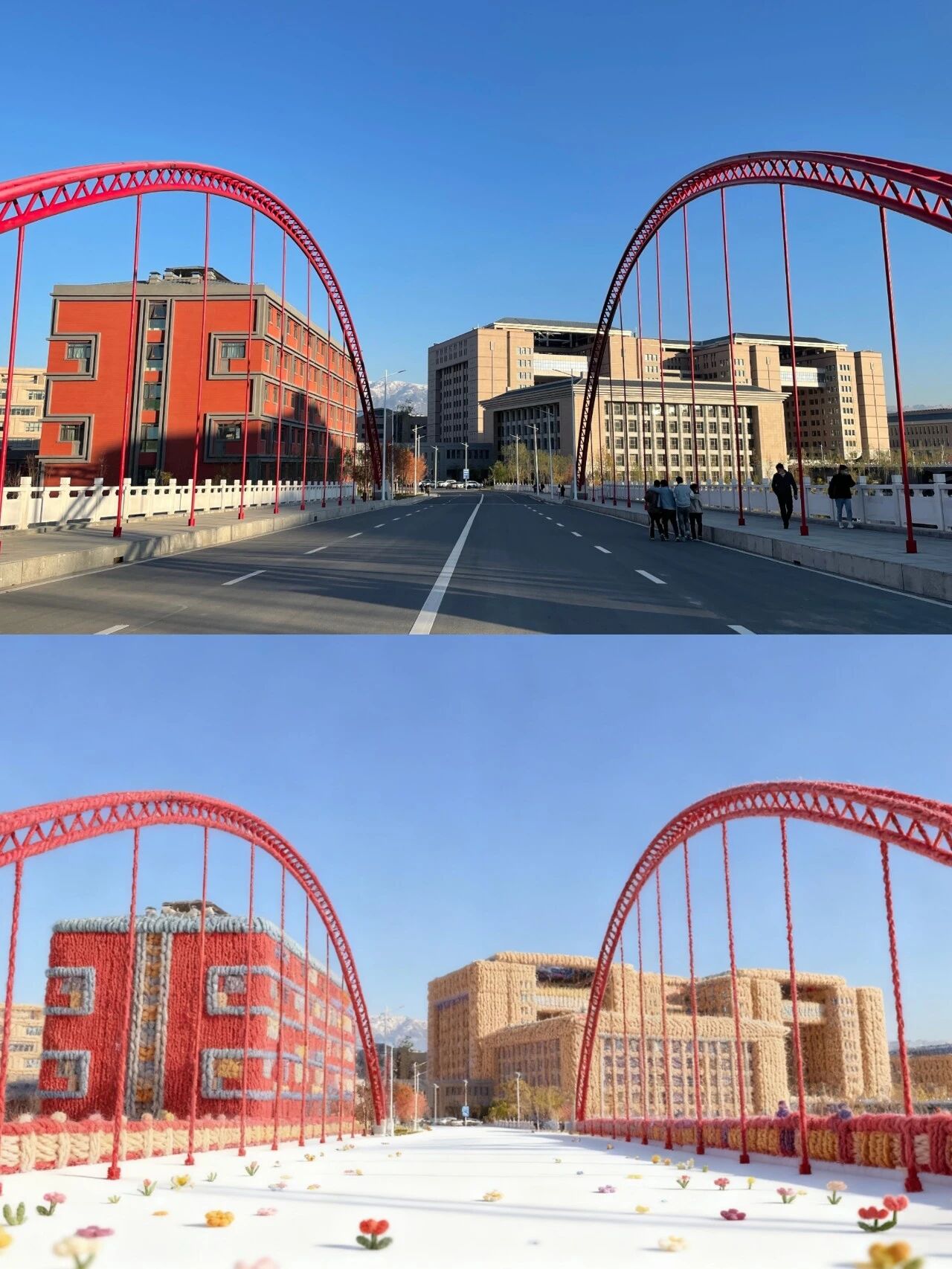 快看彩虹桥系上了彩色围巾🧣