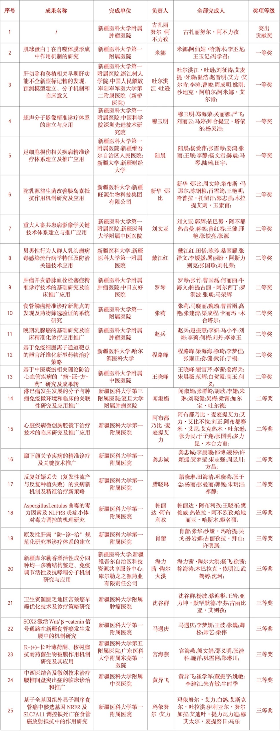 获奖名单