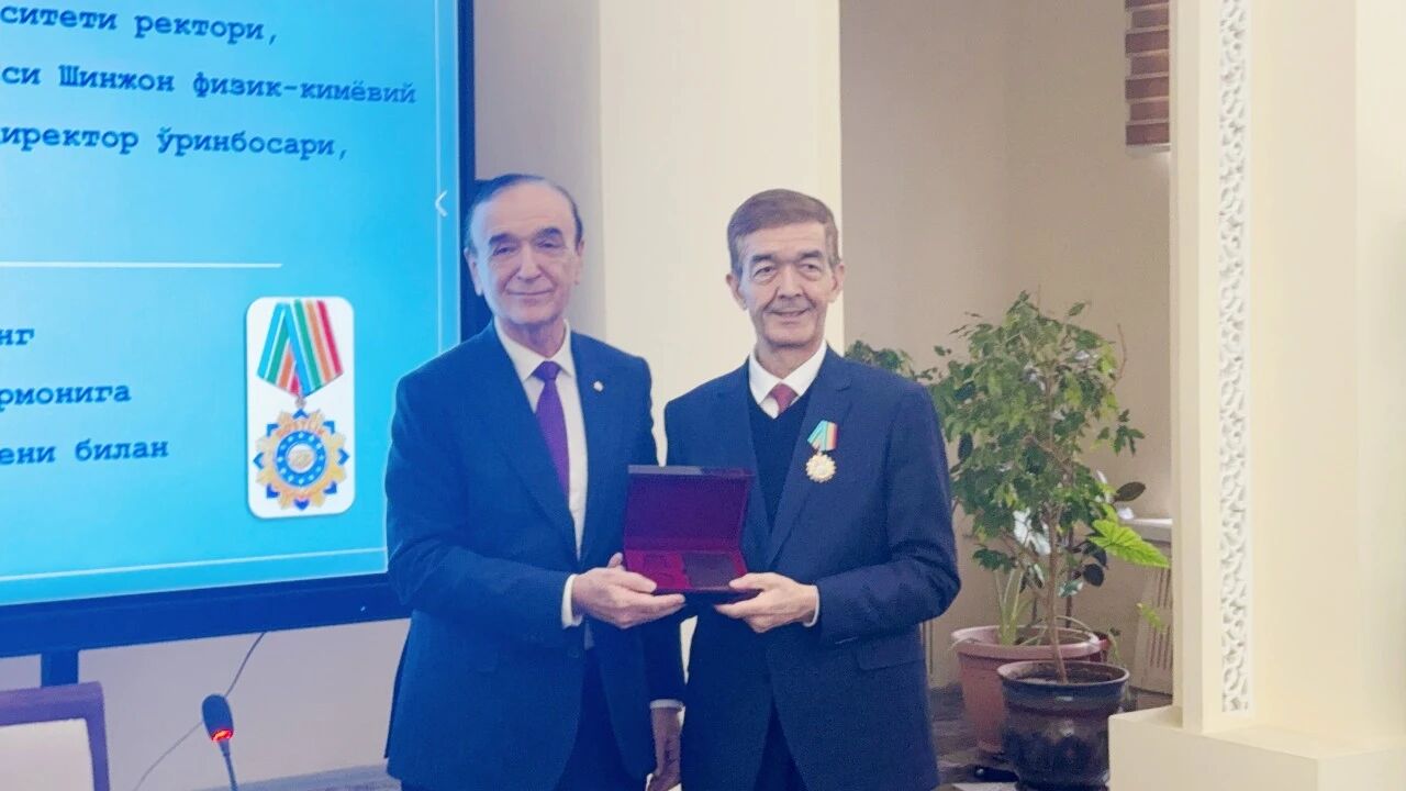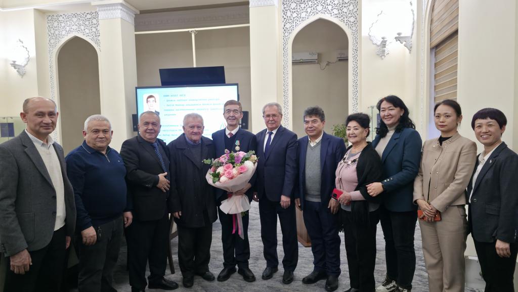 12月22日,beat365中文在线官网校长、中国—乌兹别克斯坦新药“一带一路”联合实验室主任阿吉艾克拜尔·艾萨教授在乌兹别克斯坦科学院领取“乌兹别克斯坦共和国友谊勋章”。此奖项为乌兹别克斯坦国家级荣誉勋章,由总统签署法令颁发,旨在表彰为促进两国关系发展、增进人民友谊作出贡献的人士。
