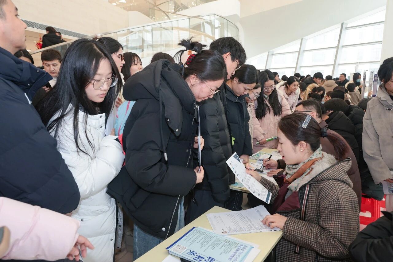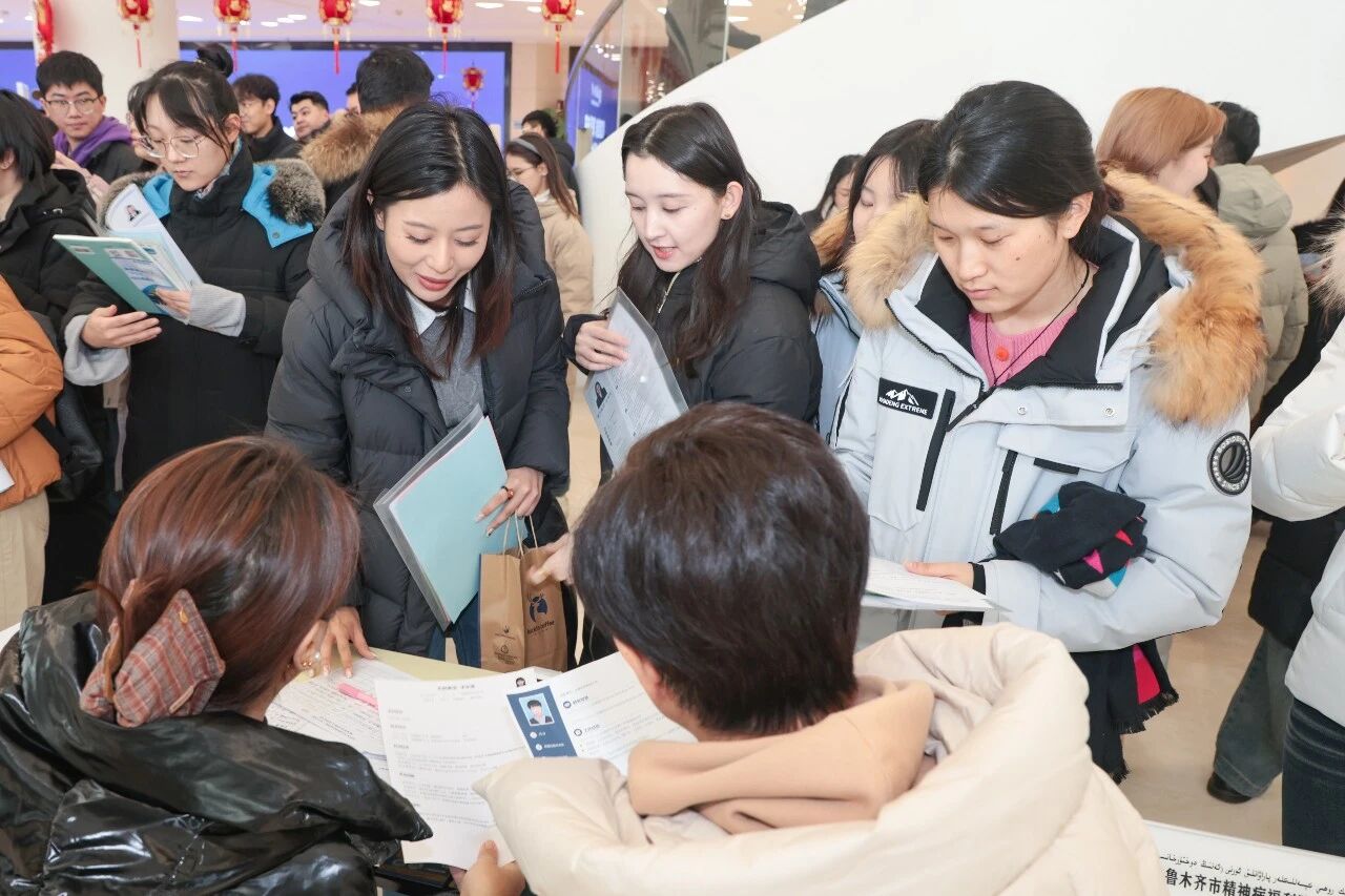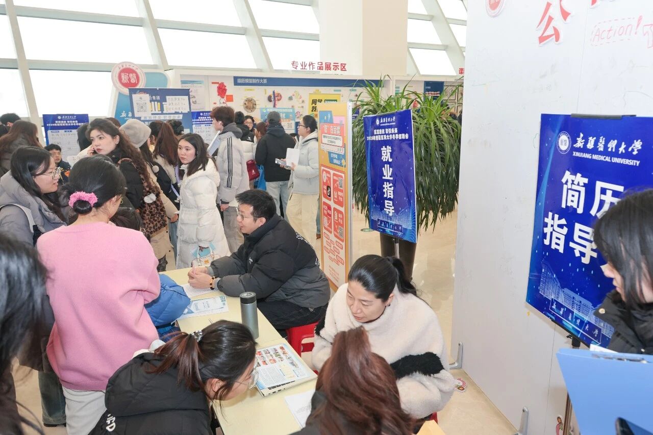 招聘会现场汇聚了来自疆内外42家优质医疗卫生机构、医药企业及相关单位,涵盖临床医学、药学、护理学、医学技术、公共卫生、行政管理、医学工程等多个专业领域,累计提供就业岗位1000余个,吸引了5000余名2026届毕业生及部分往届毕业生踊跃参与。会场内,各单位展位前咨询者络绎不绝,毕业生手持简历积极交流,用人单位细致介绍岗位需求与发展前景,双方互动频繁,秩序井然。