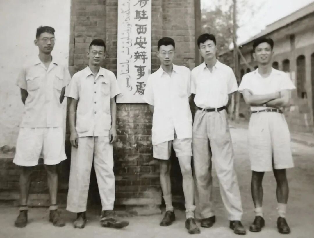 这张黑白老照片拍摄于1955年8月。照片里,5位年轻人神情平静,眼神坚定。那一年,他们刚踏上一条漫长的西行路,从繁华都市上海千里迢迢赶往新疆的途中,留下了这张珍贵的合影。