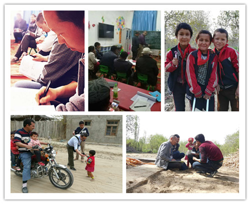 工作队员进驻前,根据自治区党委安排集中进行了双语培训,驻村工作正式开展以来,工作队员拜村干部和群众为师,通过各种方式强化双语学习。驻村工作成为检验和提高工作队员双语学习水平和能力的大课堂。工作队员宋志新和赵宁两位同志在驻村前没有维吾尔语基础,经过集中学习培训,也只是掌握了几个简单的日常用语。可是驻村不到的两个月的时间,两位同志已经能够熟练地用带着和田乡音的维吾尔语与群众进行沟通,甚至在入户走访过程中,不需要村干部担任“翻译”,独立完成“八必问”的任务。