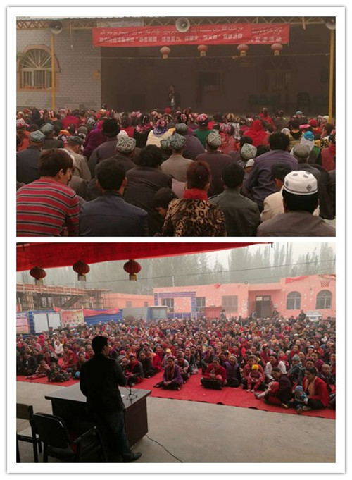 能讲、会讲、善讲的宣讲团成员阿卜杜海比尔·艾则孜老师围绕新疆数年来日新月异的巨变,结合计划生育法和妇女权益法,用精心准备的宣讲内容,生动多样的宣讲方式,“包谷馕”式通俗易懂的宣讲语言,用一连串掷地有声的反问和铿锵坚定的回答,让全场村民陷入深深的思考,“乡亲们,为什么党和政府给了我们那么多好政策,我们却不去用勤劳的双手打造幸福生活,教育好子女,为社会安定和谐贡献一份力量?党像母亲一样养育了我们,而我们却对这个辛勤哺育我们长大的母亲没有一点回报?”一个个暴恐分子破坏民族团结,破坏社会安定的案例,一个个因涉及暴恐而导致家庭不和谐的故事,阿卜杜海比尔·艾则孜声情并茂的宣讲中发人深省,现场的村民先是默然反思,随即豁然开朗,听到动情处,掌声如雷。