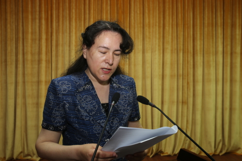 感恩重在实际行动。附属中医医院的其满古丽•斯地克医生在发言时坚定地表示,要切实发挥出维吾尔族党员干部在本民族群众中的影响力、号召力,积极教育引导广大群众感党恩、跟党走,坚起一名共产党员的光辉旗帜:(出录音)“拿我自己来说,每隔两个月,我就会跟随医院的“民族团结一家亲”小组去和田看望帮扶对象。我的帮扶对象是和田墨玉县阿克塔木村的一名手艺人,非常朴实的一名兄弟。每次去感触最深的,就是当你用心把群众的事情当做自己的事情来对待的时候,他们是可以感受到你的真情的!无法忘记的是我每次与他们谈心、唠家常的时候,他们对我的那份信任。多么淳朴的人民!我认为,作为一名少数民族共产党员能给需要帮助的人带去温暖是多么自豪的事情!我们少数民族干部特别是维吾尔族干部要发挥自身优势,带头学习、带头宣传、带头践行,在维护社会稳定和长治久安中起到带头、示范、引领作用是多么重要!”(录音止)