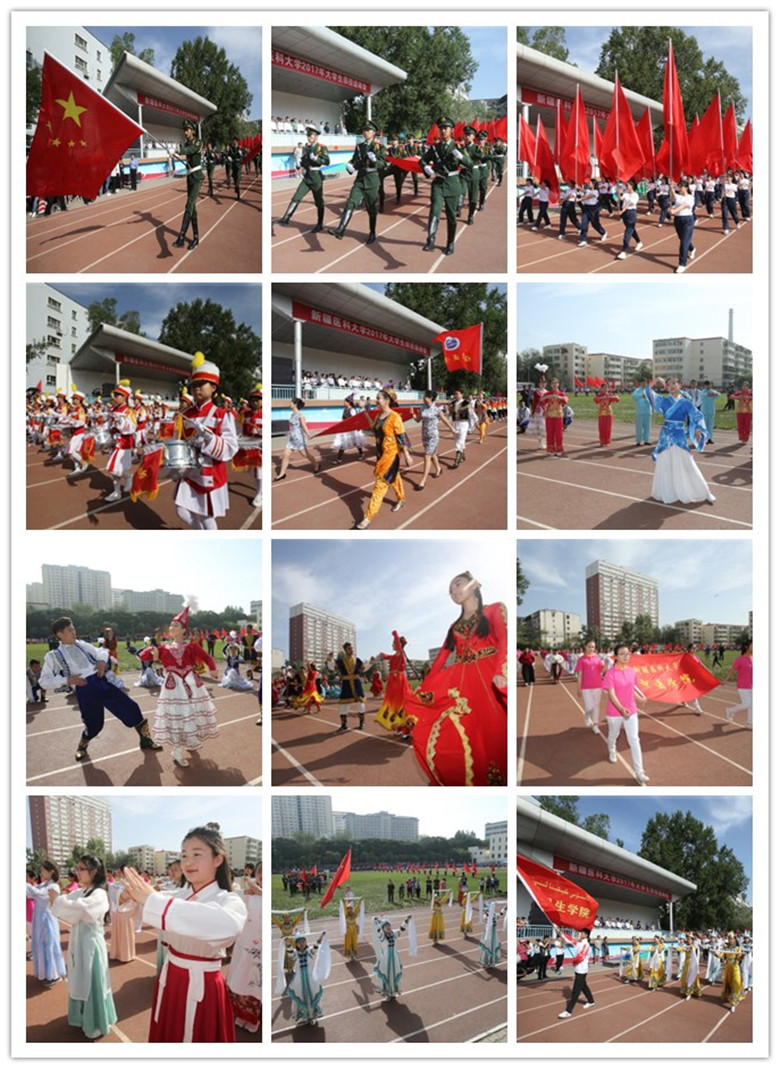 校党委书记高发水、校长凯赛尔·阿不都克热木,校领导张向阳、耿直、姚华、 毛新民、安冬青、孔宪明、贾文霄站着主席台上,向每一个通过的运动员代表队热情致意。