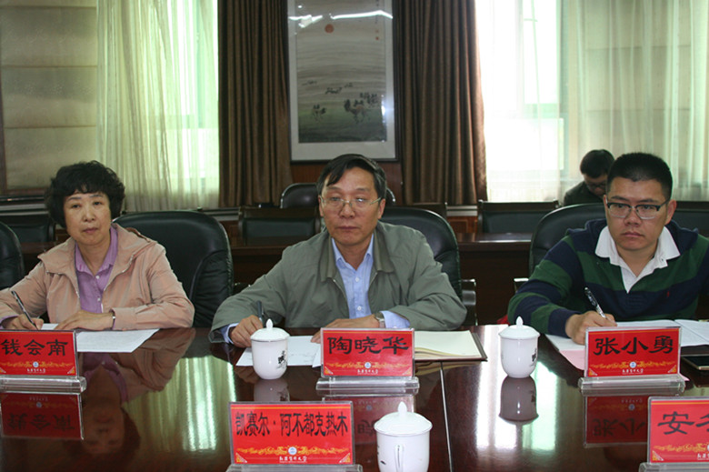 5月18-21日,北京中医药大学陶晓华副校长携博士团一行来beat365访问交流,5月19日上午召开了2017年北京中医药大学与beat365中文在线官网对口支援工作例会。会议由党委委员、中医学院党委书记毛新民主持,校长凯赛尔·阿不都克热木和副校长、中医学院院长安冬青参加会议,对口协作办、中医学院、语言文化学院、维吾尔医学院等学院部门相关领导和部分学科带头人列席了会议。