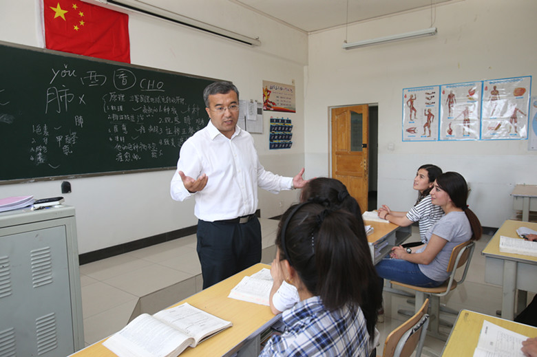 随后,凯赛尔校长来到预科2017-2班听连吉娥教授的课,并认真做了课堂笔记。课后,凯赛尔·阿不都克热木校长与学生们进行了交流,他强调学习国家通用语言非常重要,熟练掌握国语将对我们的学业、今后的工作和工作起到至关重要的帮助作用,希望同学们认真学好国语,回报父母、回报社会、回报祖国,做社会之栋梁。