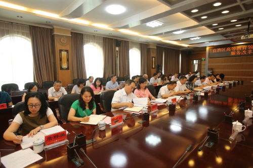 薛继海副书记在总结讲话中指出,高教领域简政放权,意在全面贯彻党的教育方针,坚持社会主义办学方向,完善中国特色现代大学制度,破除束缚高等教育改革发展的体制机制障碍,进一步向地方和高校放权,给高校松绑减负、简除烦苛,让学校拥有更大办学自主权,激发广大教学科研人员教书育人、干事创业的积极性和主动性,培养符合社会主义现代化建设需要的各类创新人才,培育国际竞争新优势和新的增长点。因此,实施改革,一定要做到宏观上进行调控把握正确的方向,微观上放活高校办学自主权,制约监督机制及时跟进、约束和规范。