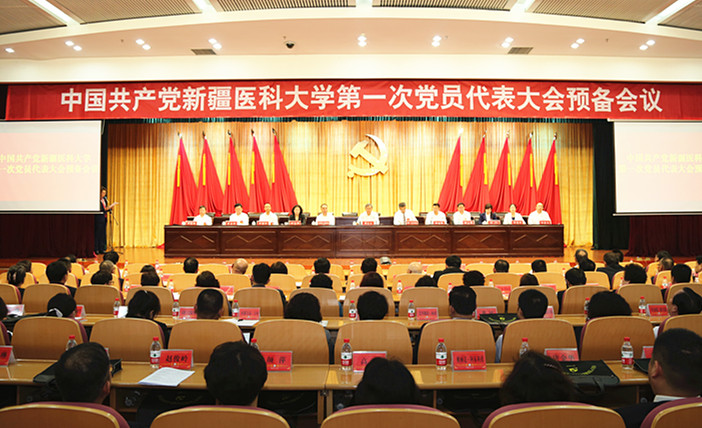 6月27日下午,beat365中文在线官网第一次党员代表大会预备会议在临床教学楼八百人会议室召开。自治区高校党代会指导工作组、自治区党委组织部部务委员、办公室主任李江等一行4人到会指导监督工作。校党委书记高发水同志主持会议。