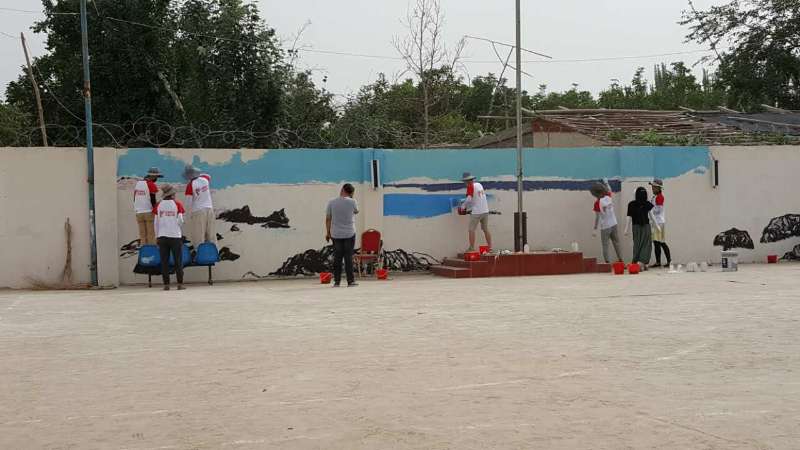 这支志愿队由青岛大学美术学院硕士生导师,美术学院团总支副书记郭靖瑜老师带队,硕士研究生1人,在校学生10人。来到墨玉县的第一天,志愿队就开始了繁忙的工作。他们用画笔为麻扎村穿上漂亮的新衣服,为当地村民们打开了一扇神奇的大门。一位没有走出过家门、更没有见过大海的村民说:“在村里能看到这些美妙的画面实在是太激动了”。