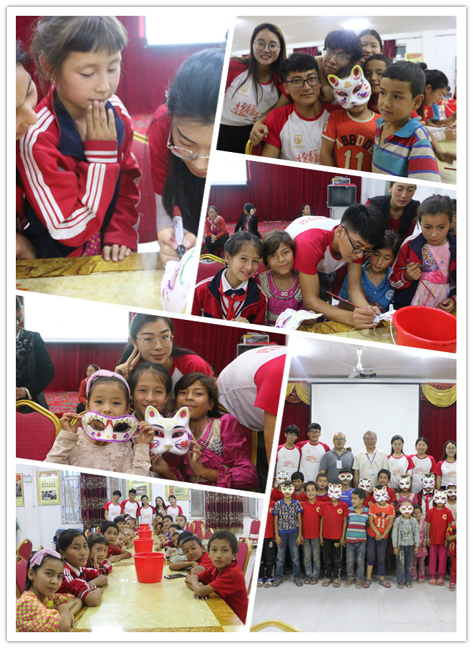 十余名大学生志愿者不顾白天辛苦,为传递正能量,弘扬大爱无疆的精神,晚上早早来到村活动中心,为孩子们带来了绘画所用的画笔,铅笔,油盘,面具等画具。主讲老师做好了充分的准备,在驻村工作队老师的协助下,她用ppt幻灯片,以图文并茂的形式生动讲解了面具的来历,如何画形状,调油,上油等基本常识。当孩子们收到小狐狸、小猫,小鹅等形状的面具时格外兴奋,翻来翻去观赏,他们之前只能在电视节目看到的变脸节目,现在手上拿到面具非常高兴。旁观的家长们看孩子们兴致勃勃的绘画,为他们高兴和骄傲,并且衷心感谢志愿者远行而来为孩子们传授知识,开阔眼界,增长见识。