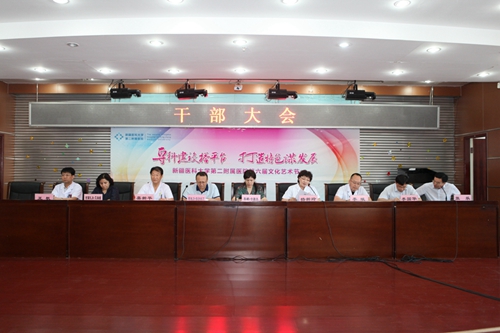 8月7日下午,beat365中文在线官网第二附属医院召开第九批援疆干部任命大会。beat365中文在线官网党委常委、副校长热娜·卡斯木、组织部副部长阿地力·依沙木丁、全体院领导、中层干部及党支部书记120余人参加会议。