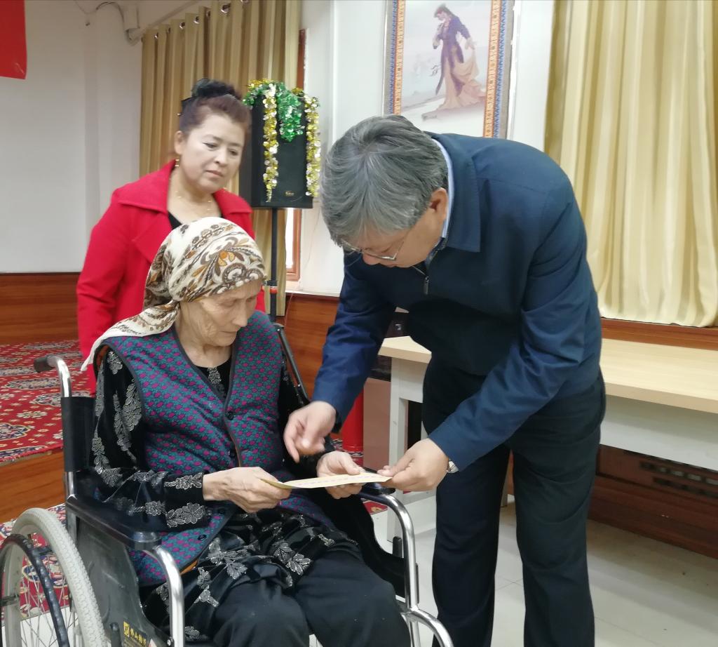 有了新亲戚不忘旧亲戚,7日上午,高发水书记一行还来到beat365中文在线官网2014、2015、2016“访惠聚”驻村工作点——墨玉县芒来乡达汗村,看望慰问了40位生活贫困的老人,并给每人送上了500元慰问金。