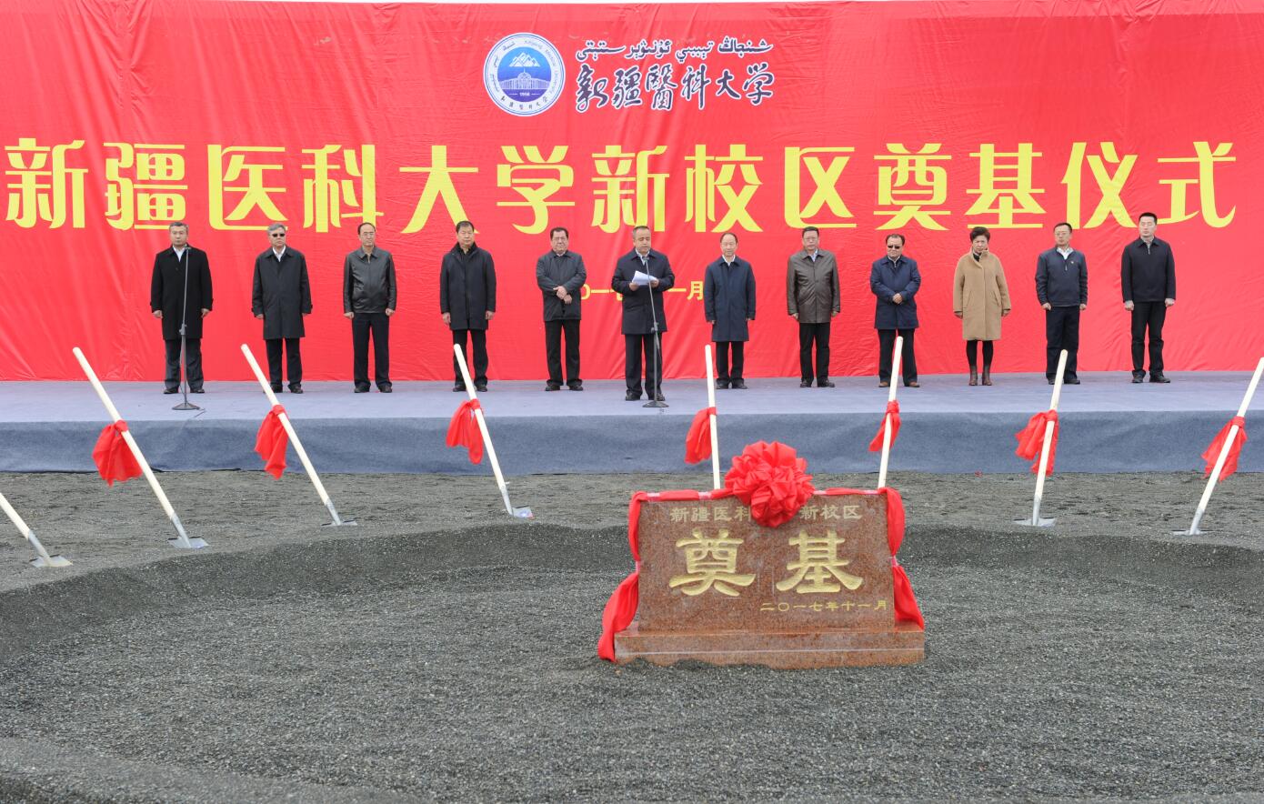 11月8日,新疆医科大新校区在乌鲁木齐市水磨沟风景秀丽的雪莲山畔举行了简朴而热烈的奠基仪式。