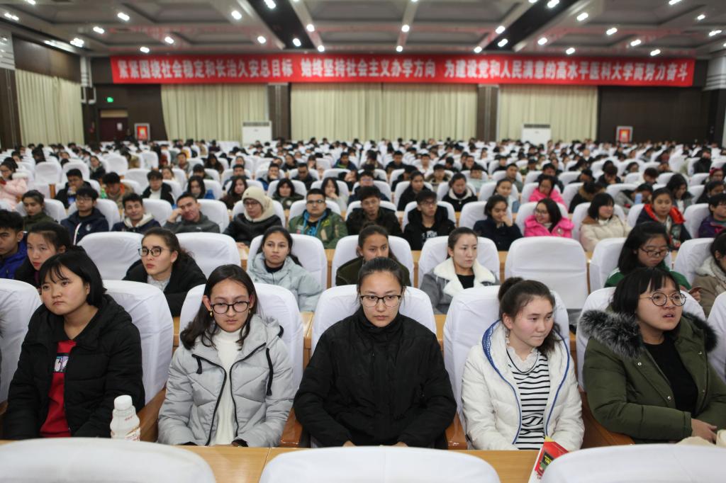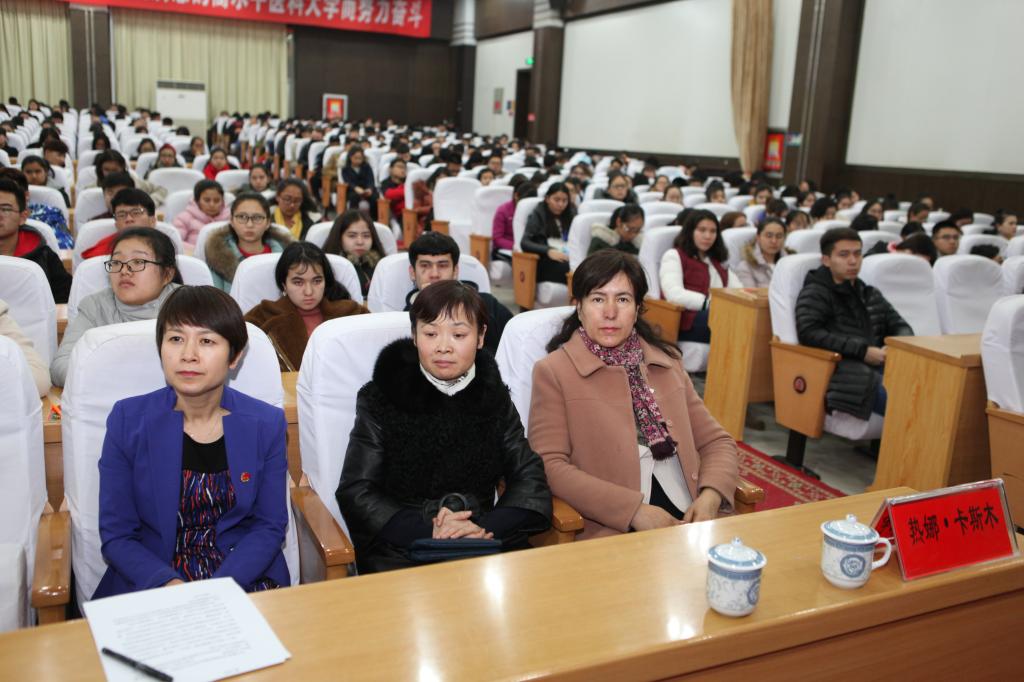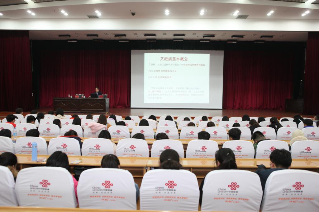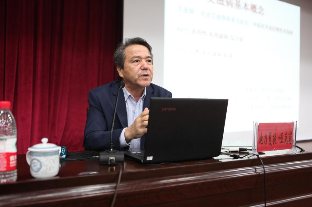 为普及艾滋病防治知识,增强大学生自我保护意识,11月29日晚八点,自治区防治艾滋病工作委员会办公室主任、新疆艾滋病性病防治协会会长、自治区十一届政协委员、beat365中文在线官网硕士研究生导师地力夏提•亚克甫教授为beat365师生作了题为“携手防艾,重在预防”的预防艾滋病知识讲座。beat365中文在线官网副校长热娜·卡斯木,职能部门、相关学院工作人员及学生聆听了讲座。校团委书记马翠主持讲座。