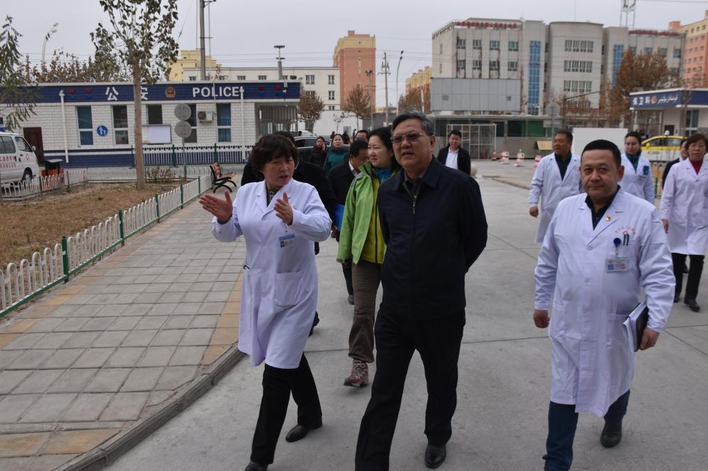 12月11日,高发水书记一行到墨玉县人民医院进行调研,并与墨玉县委就墨玉县人民医院“托管”工作进行交流座谈。高发水书记认真听取了beat365中文在线官网驻县人民医院挂职院长董旭楠的工作汇报,肯定了院领导班子所做的大量创新性工作。会议对托管后工作中存在的问题和困难进行了深入分析,商定墨玉县委将县人民医院的发展写入地区医疗卫生发展规划并出台相应政策,从人员编制、设备采购、基本建设等方面助推县人民医院医疗水平的快速发展,保障墨玉县人民群众看病就医的民生生态。高发水书记向县人民医院新一届领导班子提出了新希望、新标准、新目标,要按照二级甲等医院标准规范化管理,明确发展目标、深挖发展潜力,力争3至5年达到三甲医院标准,医院上下要下决心、下力气,攻坚克难,全力以赴,奋勇开创医院发展的新局面,努力满足墨玉县人民日益增长的健康服务需求,为新疆社会和谐稳定和长治久安提供健康服务支持。