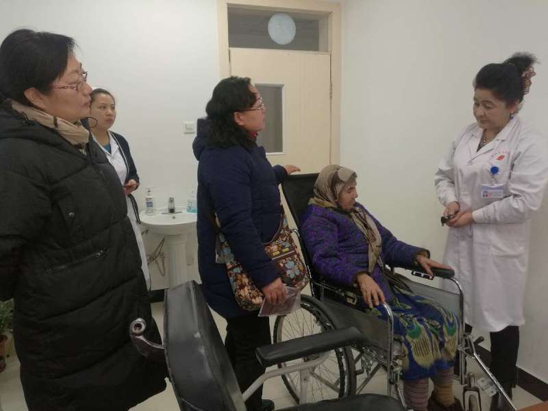 结亲周里有太多的暖心瞬间,扎瓦镇医院里的一幕,更令病床上的亲戚难忘和感动。17号上午,结亲干部来到图书馆栗庆的亲戚图尔荪托合提.扎帕尔家,得知图尔荪托合提的妻子刚做了手术正在扎瓦镇医院住院,栗庆没等碗里的热茶变凉,就赶忙让刚从和田学校里赶回来的图尔荪托合提的儿子带他去医院,探望手术后的亲戚。接过结亲干部在镇上临时准备的礼物,图尔荪托合提的妻子脸上绽开了笑容,腼腆的她只是嘴里不停地念叨着“谢谢,谢谢!”