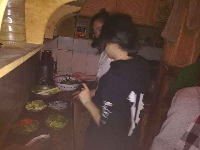 冬日的铁热克阿依拉村天气有些阴冷,但在村民穆太力普的家里却是一派热火朝天的场景。来自老年病科的结亲干部秦娟和她的几位同事们正在准备晚饭。“这两天,亲戚为了让我们吃好、睡好,可是费了不少心,今天我们要好好做顿饭,表达一下我们的谢意。”秦娟一边切菜,一边笑着说道。听说结亲干部要给大家做饭,穆太力普的爸爸妈妈起初怎么也不肯,阿姨着急的比划着说:“你们是客人,怎么能让客人动手做饭。”看到结亲干部们的一番诚意,阿姨赶紧叫来儿媳和女儿帮忙。