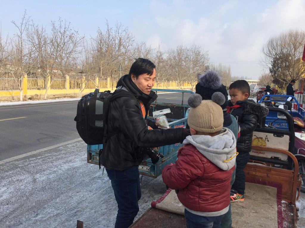 见到小孩子就分些糖果