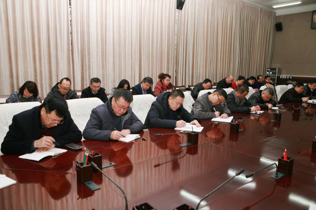 副校长安冬青、热娜•卡斯木、曹忠明、姚文兵及各附院、学院、行政职能处室的领导参加了会议。