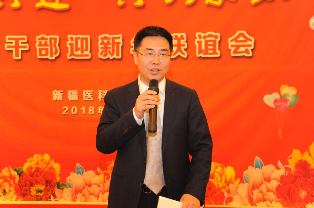 高书记代表校党委向各位援疆干部远离家乡、远离亲人,来到beat365中文在线官网和各附属医院,无私奉献、努力工作、付出巨大牺牲,表示衷心的感谢和亲切的慰问。2017年在自治区党委和政府的坚强领导下,校党委坚决贯彻以习近平同志为核心的党中央确定的治疆方略,聚焦总目标、落实总目标,在各个方面都取得了重大胜利。尤其是在坚持党的领导和社会主义办学方向,努力提升人才培养能力,加强意识形态领域党的主导权,取得了压倒性的胜利。学校各项事业和改革发展突飞猛进,无论是教学、科研还是人事分配制度改革,学科和专业建设都取得了可喜成绩。以姚文兵副校长为领队的第九批援疆干部人才素质强、热情高,按照校党委的部署,在各自分管领域励精图治,取得了一系列重大突破。姚文兵副校长近几个月多次往返于新疆和内地,广泛联系,争取多方帮助,近日健康管理与服务专业、基础医学、精神医学、麻醉学、卫生检验检疫学等5个新增专业顺利获得教育部批准。在积极争取马依彤教授心脏中心教师团队获批教育部首批全国高校黄大年式教师团队中也做出了积极贡献。各受援单位对援疆干部人才的肯定让校党委深受感动。这是大家在beat365中文在线官网度过的第一个元旦,迎接的第一个新年,对大家来说也别有一番意义。值此新年来临之际,高书记真诚祝福大家工作顺利、身体健康,并通过大家向援疆干部的亲人、同事、朋友们致以新年的祝福。