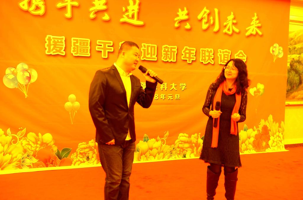 校党委书记高发水发表了热情洋溢的新年贺词。他说,2017年习近平总书记带领全党和全国各族人民意气风发的走进了中国特色社会主义新时代。在这千里冰封、万里雪飘的祖国西北,校党委与援疆干部人才共同携手走进2018年。2018年的到来,注定迎来的是一个更加团结、共同奋斗、争取更大辉煌和胜利的一年。