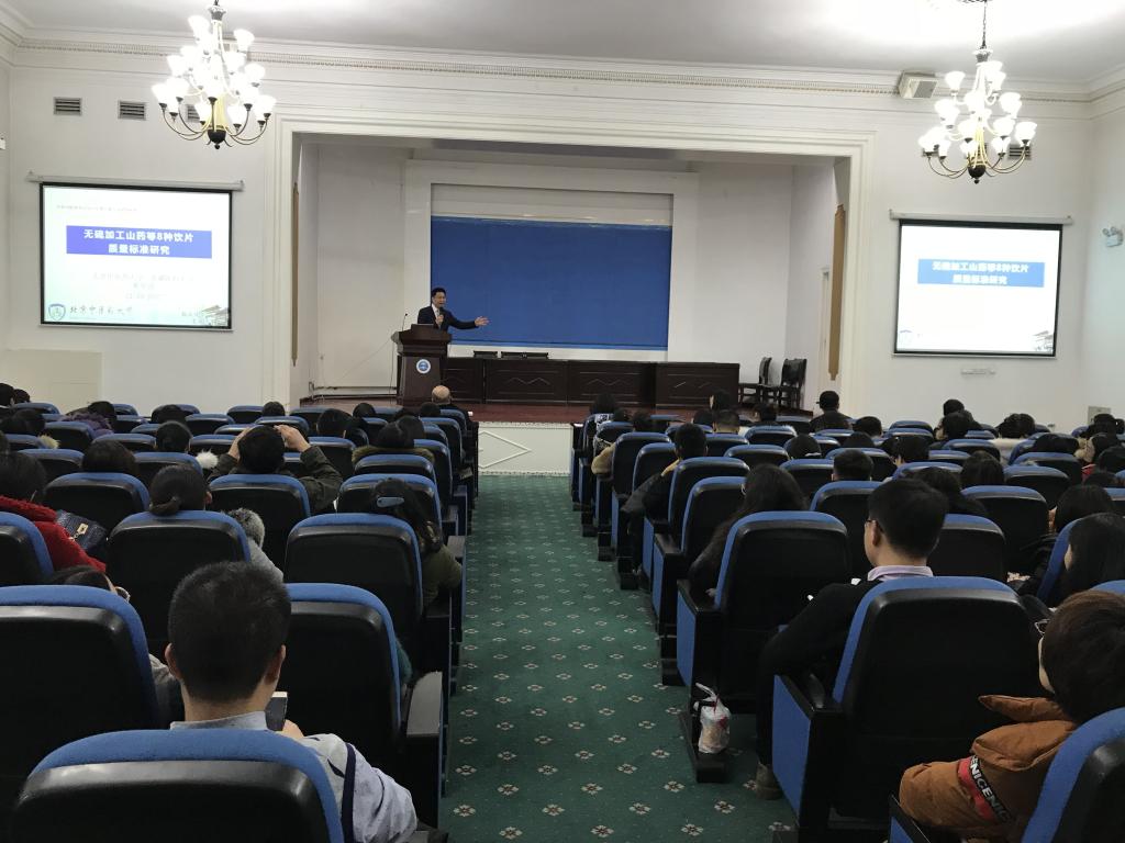 翟华强教授以“无硫加工山药等八种饮片的质量标准研究”为题进行学术讲座,翟教授从中药硫熏的利弊入手,从中药研究的顶层设计、中药质量标准制定的重要性等方面,对怀菊花等8种饮片质量标准制定的过程、技术路线等通过国内外案例比对,进行了深入浅出的讲解,为我们进一步推进中药科学研究提供了新的思路。