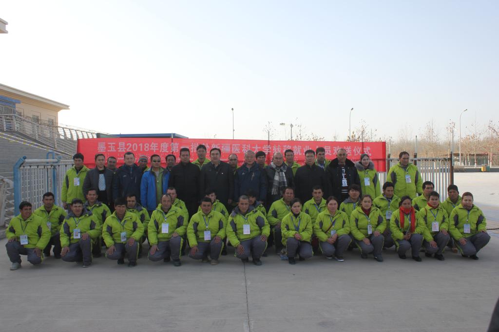 按照 “农民自愿报名、严格政审培训” 的模式,从报名的60多人中,通过政审、体检,最终选出35人对其进行转移就业岗前培训,共培训六天,主要学习法律、语言、劳动纪律和军训,并免费提供学习文具、午餐及服装。前往医科大学就业的农民主要从事物业、服务和厨艺等岗位,工资按月结算,不仅有基本工资,每月还会有奖金以及绩效考核工资,与当地务工人员同工同酬。