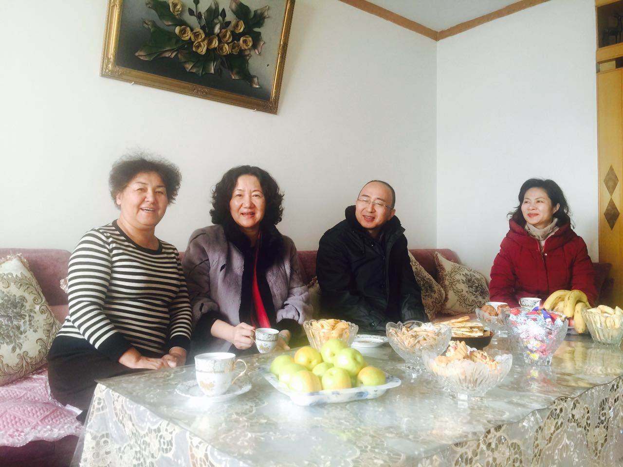 在帕尔哈提•阿不都克热木教授的家,老同志热情地招呼大家,他说: “高书记在春节来临之际到家里看望我们,是对少数民族教职工的关心关怀,我特别荣幸、特别高兴。”帕尔哈提•阿不都克热木教授说,自己在学校学习工作生活了46年,对学校有着深厚的感情,希望能继续发挥余热,为学校的教育、教学事业贡献自己的微薄之力。帕尔哈提教授还对学校的发展提出了自己的意见和建议。高发水书记对老同志关心学校建设的热忱之心表示感谢,并将老干部的意见、建议一一记录,表示下一步,校党委将认真听取和研究老同志们的想法和意见,汇聚全体师生员工的力量,共同推动学校各项事业迈上新台阶。