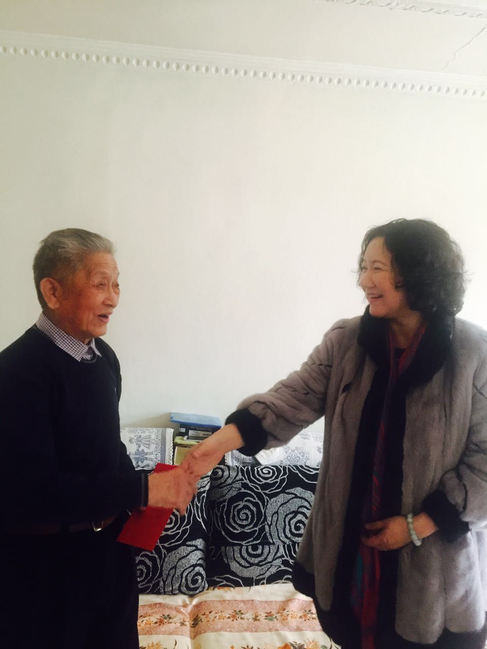 今年92岁高龄的吉斌老人是一名老八路、老党员。虽然年事已高,但老人家依然身体硬朗、思维清晰,平时爱好书法。见到凯赛尔校长一行来到家里慰问,还送来了慰问金,吉斌老人由衷感谢党和政府的亲切关怀,老人随即拿出了一沓早已包好的一万元现金,郑重地交到凯赛尔·阿不都克热木校长的手里,说:“这是我的特殊党费,请您一定要替我交给党组织,以表达我一个普通老党员的责任。”接过老人递上的一万元现金,听着老人朴实而恳切的话语,凯赛尔校长深受感动:“您的高风亮节真的让我们深受教育。我一定会把您的这份特殊的党费交给组织。我也代表组织衷心感谢您,您为我们所有党员干部们树立了很好的榜样,我们要学习您一生坚定跟党走的决心和一颗红心献祖国的赤诚之心。”