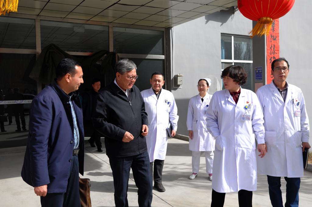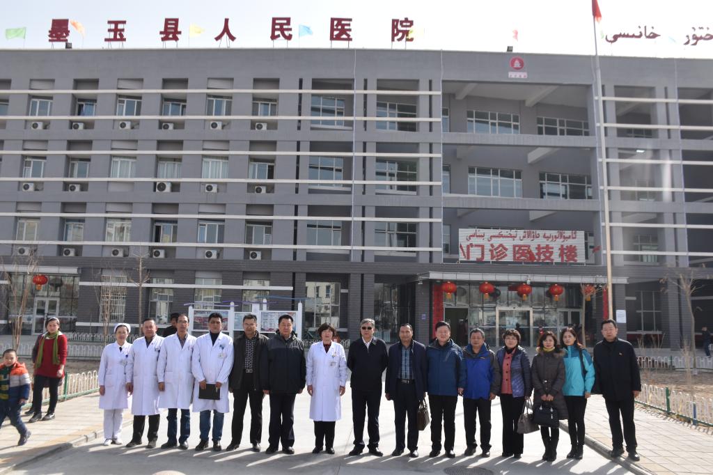 beat365中文在线官网党委常委、副校长,beat365“访惠聚”驻墨玉县工作队前方(临时)党工委书记、总领队曹忠明,医管处、人事处及各附属医院负责人陪同调研。