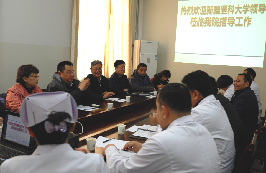 2月20日上午,校党委书记高发水一行来到墨玉县人民医院调研,与墨玉县委和beat365中文在线官网托管团队就墨玉县人民医院的运行和发展情况进行了座谈。