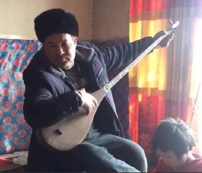 艾比布拉抑制不住自己激动地心情,拿起了家中的都他尔说:“你们过年来看我我真是太高兴了,第一次过年家中有这么多的亲戚在一起。感谢党的好政策。来,我给大家弹一曲。”说着,艾比布拉边弹边唱起了维吾尔族民歌《解放的时代》,伴随着欢快的音乐,结亲干部玛依努尔在炕边舞动起来,大家在一起欢声笑语,载歌载舞,共同欢度佳节。
