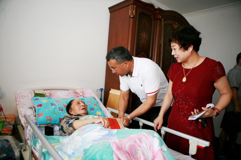 在92岁的老党员王士平的家,高发水书记详细询问老人的身体状况和家庭情况,倾听老人讲述早年参加革命工作的激情岁月,对王士平老人一生艰苦奋斗、不计得失、甘于奉献的革命精神给予了高度赞扬。王士平老人拿出事先写好的满满两页信纸,信中一一列举了老人对学校一年来发展变化的评价和感受,和对新校区建设的意见想法。高发水书记从老人手中接过信纸,仔细阅读后,立即叮嘱身边的随行同志将这些意见记录整理好,交给各分管校领导督办解决。高发水说:“王老虽已退休多年,依然对学校的各项事业热切关注,对beat365中文在线官网有着深厚的感情,这份沉甸甸的责任和深情令我们感动,更值得我们所有党员学习。老一辈革命先辈为新疆的医疗卫生事业、为新疆的繁荣发展做出了巨大的牺牲与贡献,换来了我们今天的幸福生活,党和人民永远不会忘记。”