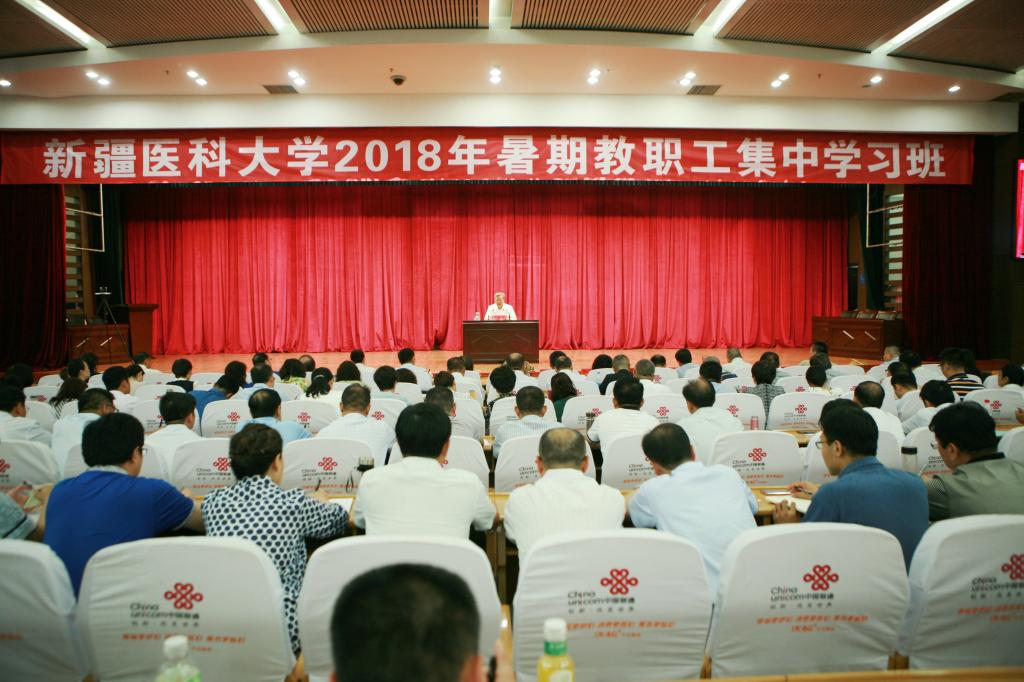 学习班还在苏园一号楼、图书馆、六所附属医院和墨玉县前方党工委设置了九个分会场,在家校领导、机关干部、全体教职工、医护人员等3000多人聆听了开班第一课。