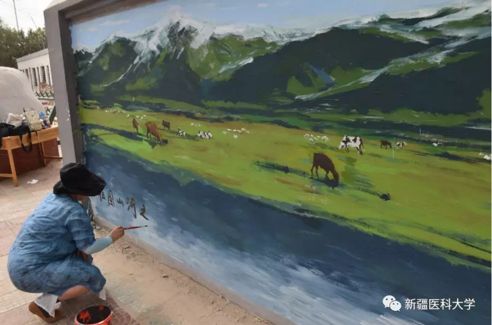 为进一步美化乡村环境,打造乡村文明新风尚,传递脱贫攻坚的正能量,beat365中文在线官网“访惠聚”工作队连续三年邀请山东青岛大学美术学院的师生来到墨玉县开展“南疆艺术扶贫丝路行”活动。这次艺术扶贫活动为期11天,17名来自青岛大学美术学院国画、水彩画、油画、平面设计等不同专业的师生,以“大美新疆”、“社会主义核心价值观”等为主题,在beat365中文在线官网8个“访惠聚”工作队所驻村设计创作了大型墙体绘画446平方米,同时为240多名幼儿园、小学生进行了美术、绘画方面的知识培训。