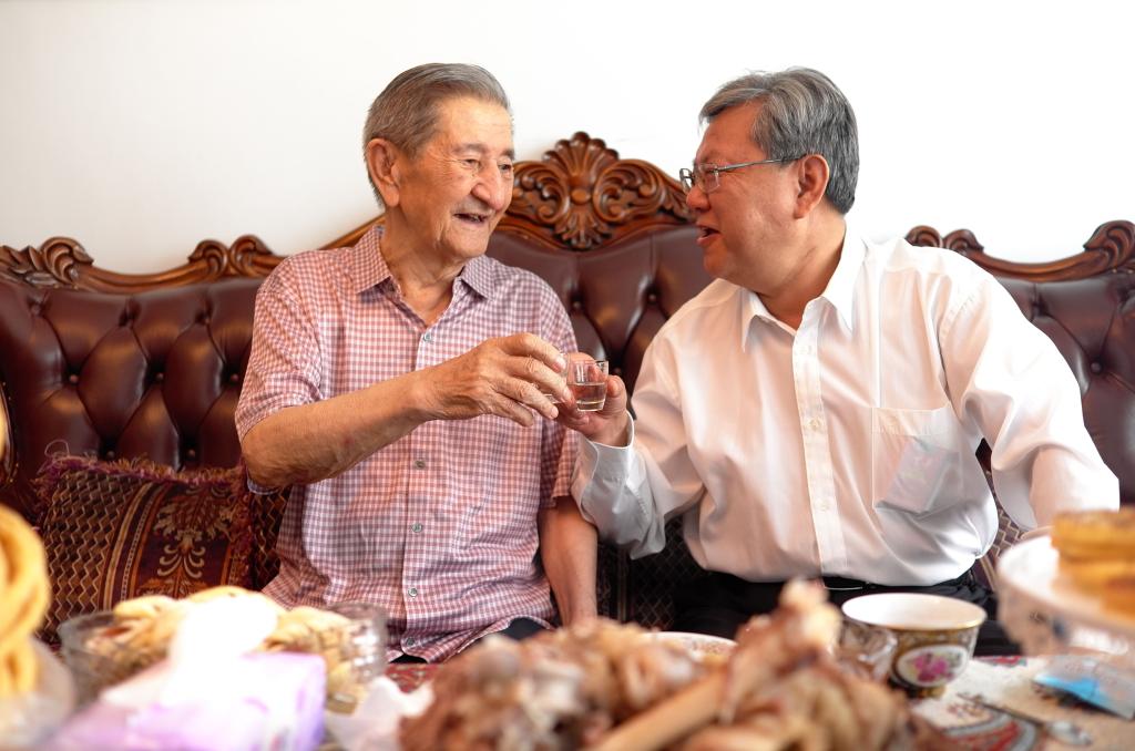 上午,高发水书记一行首先来到了原新疆医学院院长沙比提·斯拉木家中。一进门,尚在病中的沙比提欲几度起身迎接,高书记赶忙迎上前去扶老人坐下。他说,您老为beat365中文在线官网的发展立下了汗马功劳,培养了一大批优秀的医学人才,如今他们已经成为了新疆医疗卫生领域的骨干,作为老领导您要保重好身体,继续为学校的发展献计出力。沙院长拉着高书记的手说,一年多来beat365中文在线官网发生了翻天覆地的变化,我们由衷地为这一届校党委点赞。今天过节,尽管医生不让我喝酒,但我想代表老同志给高书记敬一杯酒,表达我们老同志对校党委的深切祝愿。高书记说,这杯酒我也要通过您向过去为beat365中文在线官网的发展做出贡献的老同志们送上节日的祝福,同时也祝愿我们有着优良红色基因的beat365中文在线官网能够蒸蒸日上,再创辉煌。