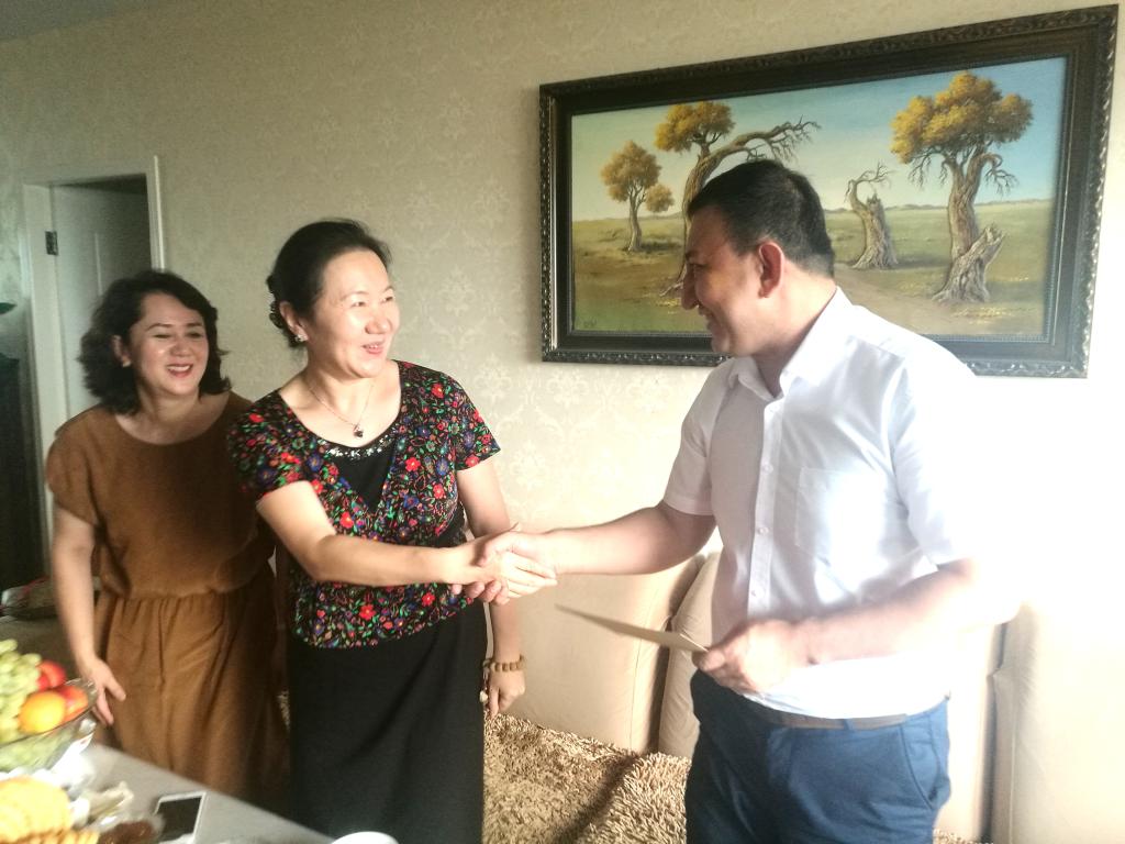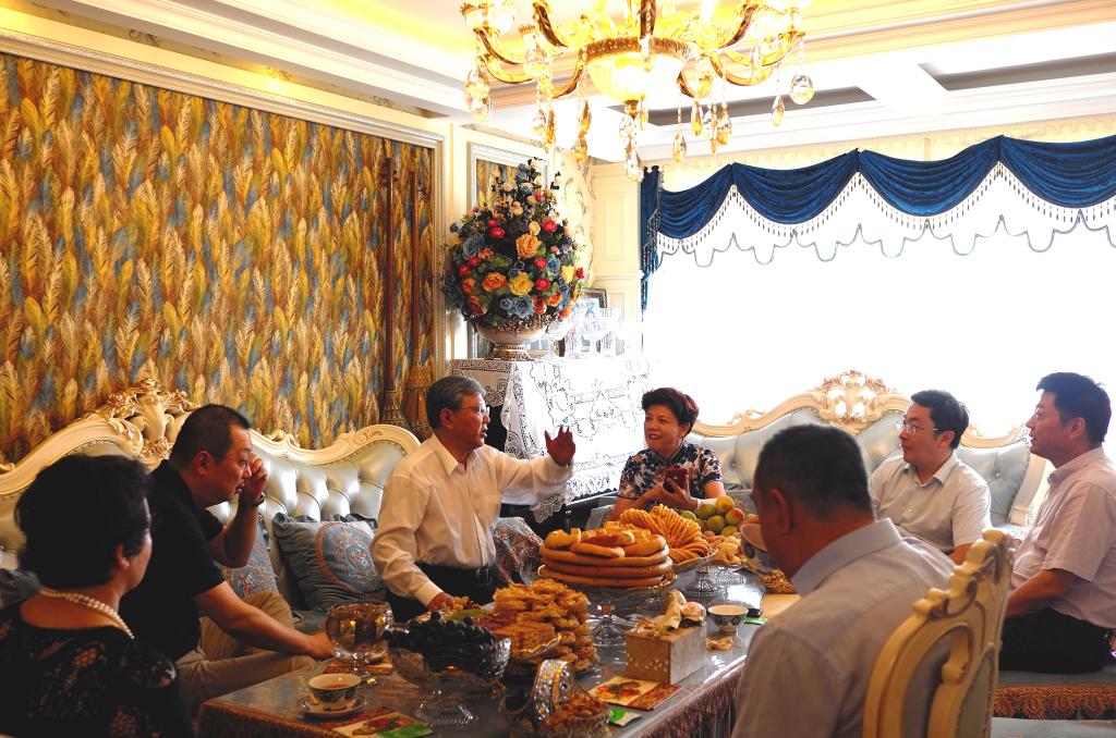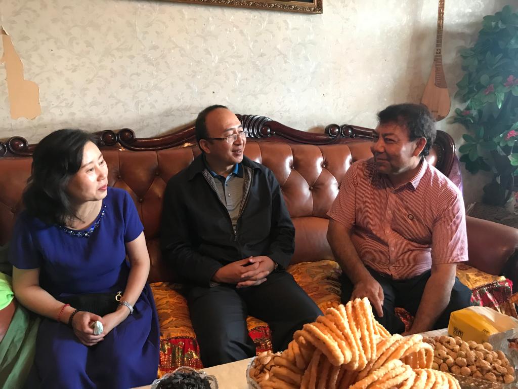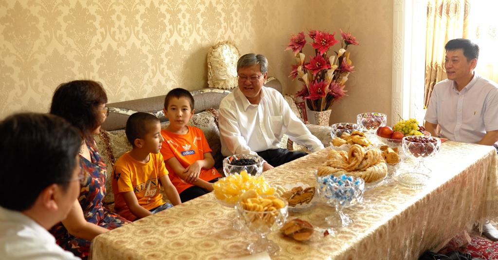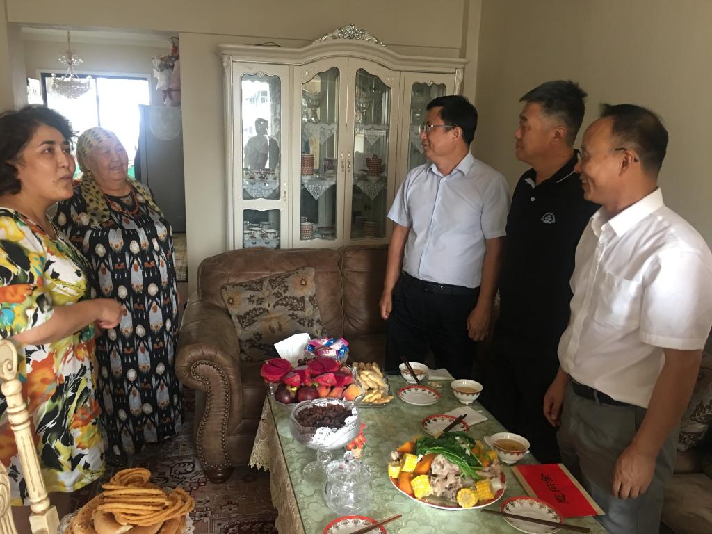 在马克思主义学院副教授古丽孜拉家里,为慰问人员准备了可口的哈萨克风味奶茶。安冬青副校长勉励她要充分发挥思政课教师的作用,用马克思主义理论武装大学生头脑,引导他们树立正确的世界观、人生观、价值观,为维护学校安全稳定作出贡献。