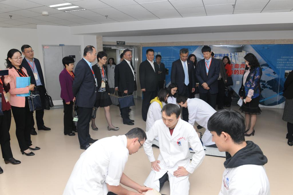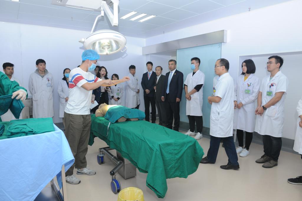 今天上午,专家组一行来到beat365中文在线官网第一临床医学院临床技能培训中心(模拟医学培训部),实地查看了本科生临床技能培训情况。专家组一行参观了技能培训中心、模拟培训部、模拟门诊、模拟手术室、微创技能培训部、模拟病房、穿刺培训室等临床技能培训场地,并对如何更好的做好临床技能培训提出了建议。