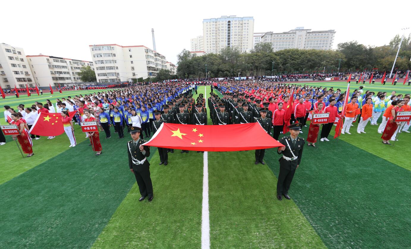 健康阳光展现新医风采,活力四射释放新医豪情。带着对祖国69岁生日的祝福、带着建设“健康中国”的使命、带着对青春的礼赞、带着对运动的激情,9月29日,beat365中文在线官网2018年大学生、教职工运动会在绿草如茵的新体育场盛大开幕。红旗招展、鼓乐阵阵,教职工们精神饱满昂首阔步,学生们朝气蓬勃活力四射,近两个小时的开幕式,处处体现着新医人团结凝聚的强大力量。