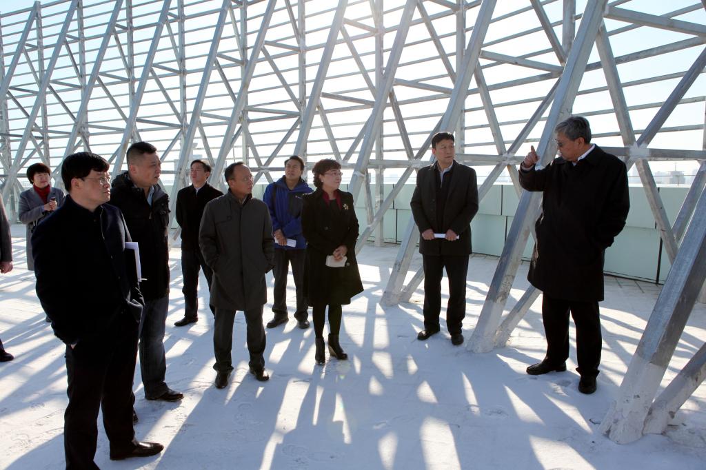 在二附院南湖分院,高发水书记一行实地详细查看了综合实验楼外围通风口、停车场、大门等。随后走进综合病房楼查看了急救中心、规范化培训中心。高书记一行还爬上已经结了冰的湿滑的24楼楼顶,现场查看了楼顶钢结构广告牌和构造。详细询问了二期综合病房楼项目建设规划、楼宇布局、各类配套设施、施工进度累计完成投资等方面的情况。