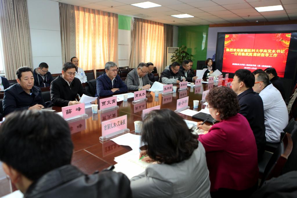 随后,召开了二附院专题会议。二附院二期综合病房楼经过5年多的建设,目前已经通过了乌鲁木齐市质检站和消防支队竣工验收,综合病房楼正在筹备搬迁工作。二附院负责人向高发水书记一行汇报了二期综合病房楼项目工作推进情况、存在的困难和问题。