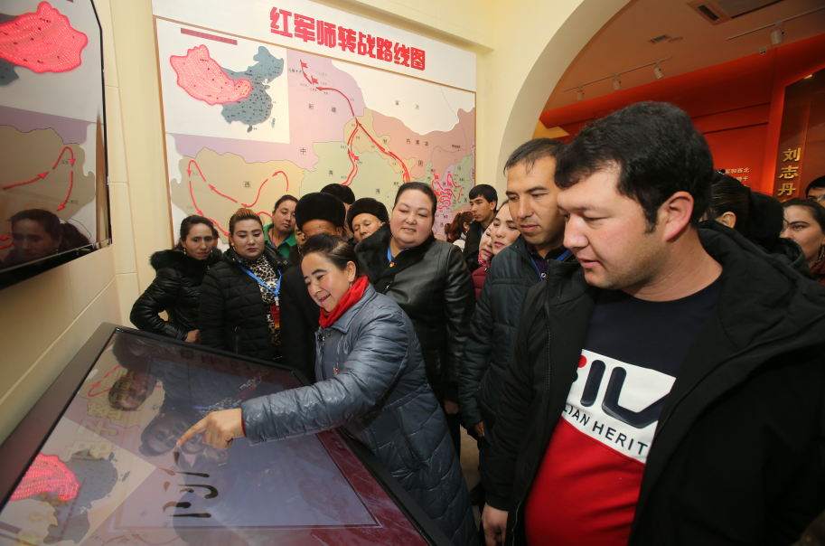 在参观自治区博物馆时,69岁的村民阿瓦提汗·麦麦提一边看着一件件文物,一边认真聆听着讲解员解说新疆的历史,他激动地说:“参观了博物馆之后,我真切感受到新疆是各民族共同生活的家园,我们要像石榴子一样团结在一起,把新疆建设得更好”。