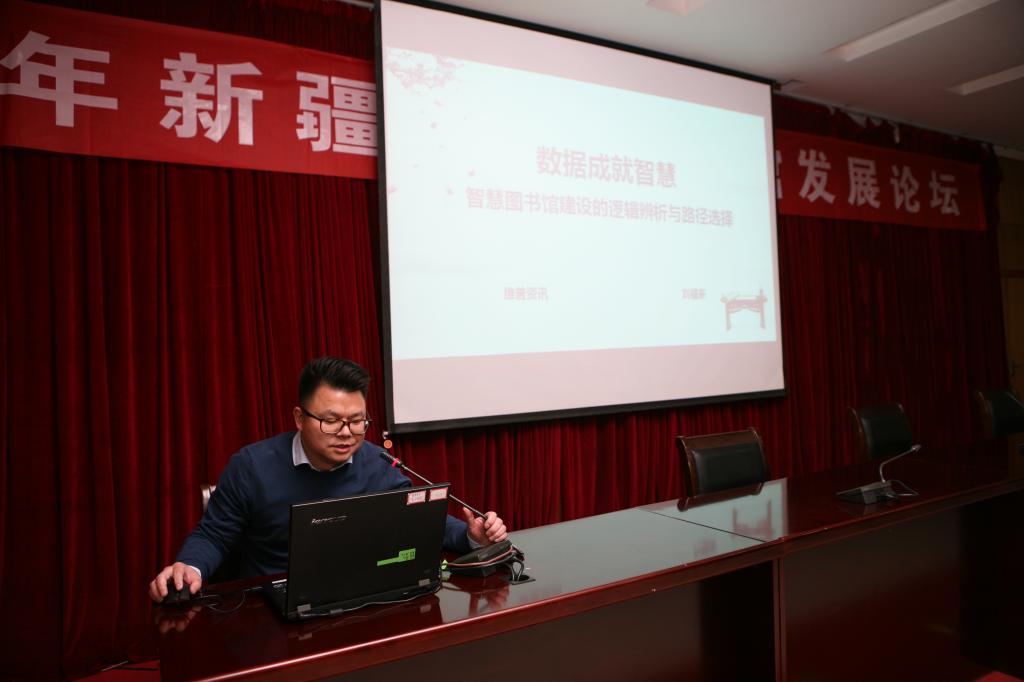随后,结合beat365新校区图书馆的建设构想,新疆农业大学图书馆副馆长唐杰波做了《图书馆的新馆建设理念和设计》的专题讲座,唐副馆长以先进的图书馆管理理念、独到的建设设计实践经验,给新校区图文信息中的建设提供了宝贵的建议。最后,针对图书馆数字化资源的建设,维普公司专业技术培训师做了《数字图书馆数据服务平台建设》”的报告,为新校区智慧图书馆的构建描绘了美好蓝图。