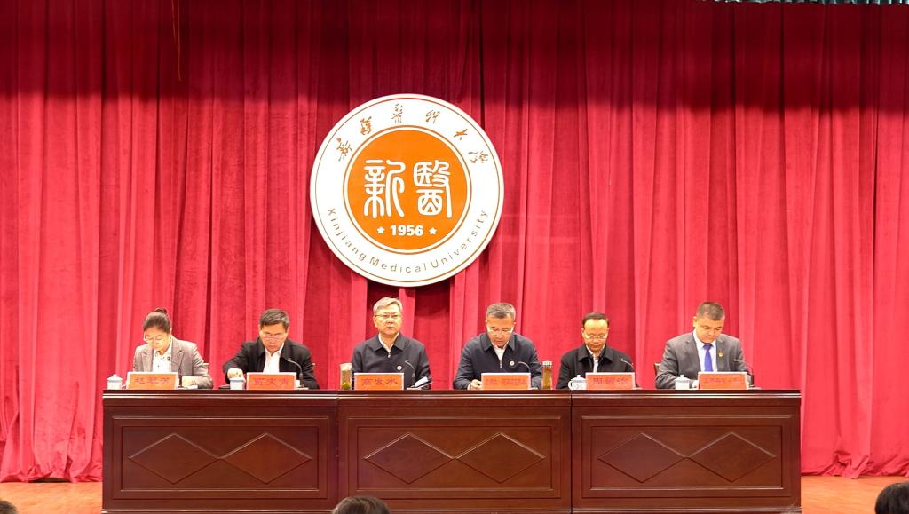 受自治区党委组织部委托,校党委常委、副校长、一附院院长贾文霄宣读了自治区党委、自治区人民政府干部任免决定:曹忠明同志任校党委副书记,免去副校长职务;赵翠芳、李勇生、再那吾东•玉山三位同志任校党委常委、副校长。