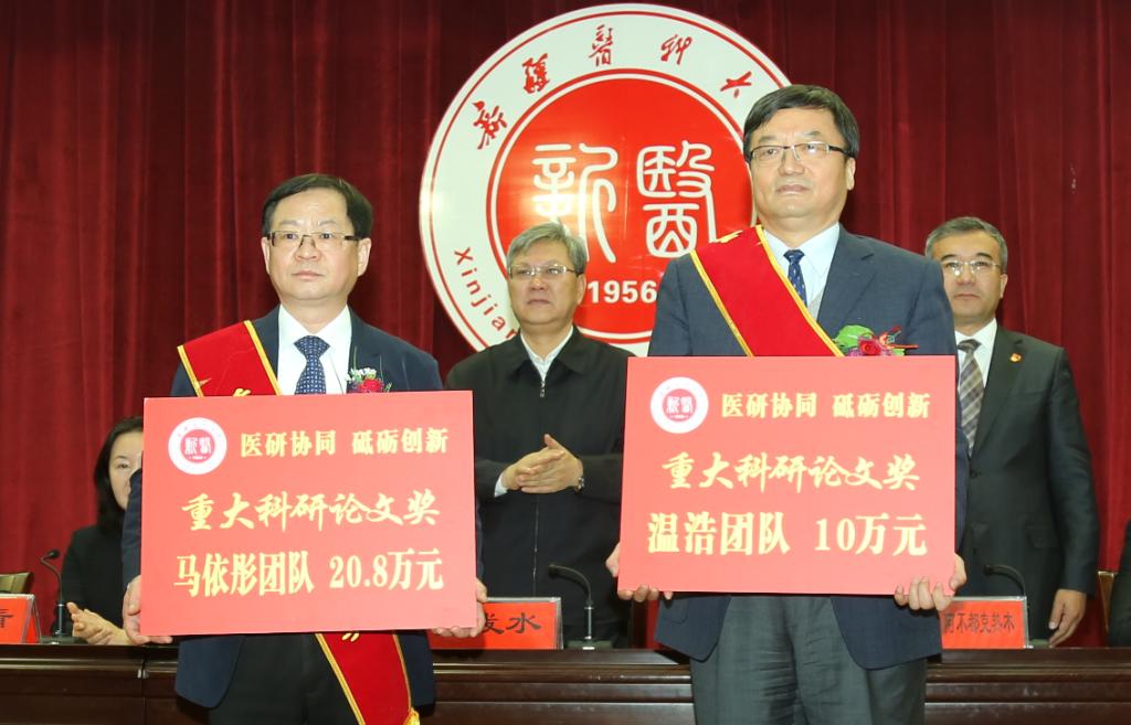 校党委书记高发水代表学校党委向受到表彰的先进团队和个人表示崇高的敬意,向全校广大教师和科研工作者表示衷心的感谢和诚挚的问候!高发水书记说,一年来,beat365中文在线官网牢牢把握国家“一带一路”战略和新疆丝绸之路经济带核心区建设的战略机遇,按照“立足新疆、高位谋划、凝练方向、整合资源、发挥优势、重点突破”的科研建设总体思路,取得了一系列创新强、价值大、水平高的科研成果。主要表现在学科竞争力明显增强、医院科技量值和综合排名均在全国脱颖而出、国家临床医学研究中心纷纷落户beat365、高层次人才队伍的影响力初见成效等,为区域经济社会发展做出了积极贡献。