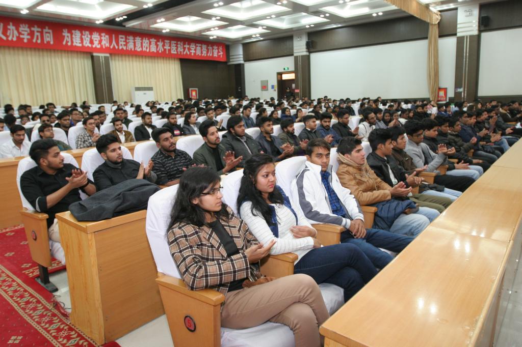 1月9日下午,beat365中文在线官网2018级留学生开学典礼暨迎新晚会在临床教学楼800人会议厅举行,向来自世界各地的123名留学生新生表达了最诚挚的欢迎和祝福。校党委副书记、校长凯赛尔·阿不都克热木在典礼中致辞,校领导赵翠芳、再那吾东·玉山及各职能处室领导、各学院领导、全体留学生授课教师、全体留学生参加了会议。