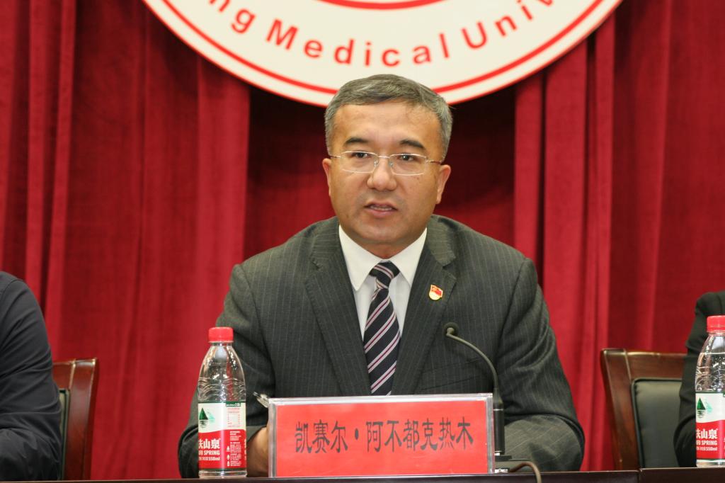 凯赛尔·阿不都克热木校长首先向全体新生千里迢迢来到beat365中文在线官网求学表示热烈的欢迎,并衷心祝贺同学们成为新医大家庭中的一员。凯赛尔校长从发展历史、办学规模、师资队伍、教育教学环境等方面全面介绍了beat365中文在线官网,并结合自己的工作经历,回顾了往届留学生在新医度过的点点滴滴。面对来自异国他乡的同学们,凯赛尔校长寄语希望:希望同学们勤奋学习,不断成长。习近平总书记说,“有信念、有梦想、有奋斗、有奉献的人生,才是有意义的人生;现在,青春是用来奋斗的,将来,青春是用来回忆的”希望你们在最能吃苦的年纪选择学习,对自己提出新的人生目标,珍惜在新医难得的学习机会,认真听好每一堂课、学好每一门课程,吃得下学习的苦,走得好每一步路,为自己积蓄力量;希望同学们宽以待人、团结友爱。在生活中彼此尊重、和谐相处,常怀感恩之心,感恩父母,为你们的成长付出一切;感恩老师,带你们遨游知识的海洋;感恩同学,陪伴你们度过六年时光。在学习中,团结同学、尊重老师,认真学习、诚实做人,积极与同学们探索交流,增进了解,注重树立个人良好形象,做好自己国家的代言人。希望同学们遵纪守法,传播友谊。遵守中国的法律、法规,遵守学校的校纪校规,与中国学生一起,共同学习、共同进步、共同提高,顺利完成学业。发挥桥梁纽带作用,宣传自己国家的风土人情,慢慢喜欢中国、宣传中国,把中国当作自己的第二故乡,做好中外友谊的使者。